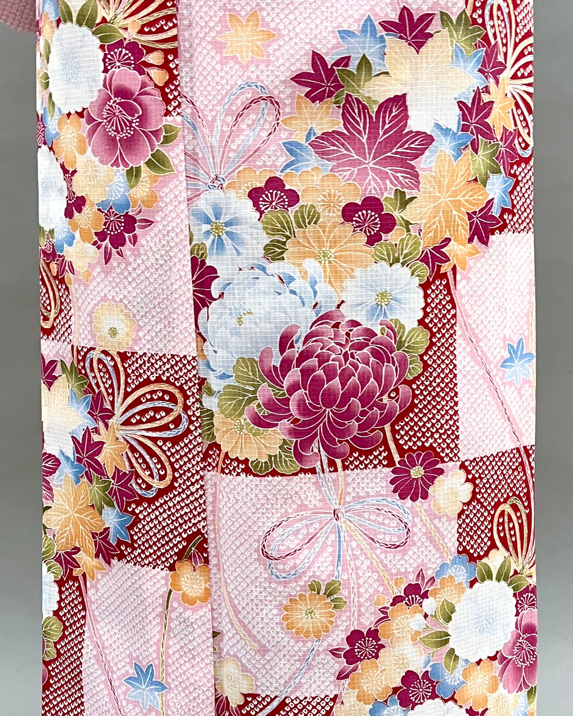 赤やピンクの疋田模様に目を引く、可愛らしい薬玉柄が印象的なプレタ浴衣。きもの道楽が誇るセオα素材を使用しており、しなやかで軽やかな着心地を実現しました。このデザインは、夏の行事やお祭りといった特別な日のお出かけにもぴったりで、コーディネートの幅を広げること間違いなしです!